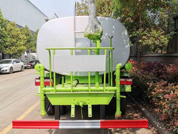 (2)配備專用灑水泵,前噴后灑、側噴、后工作平臺及灑水高壓炮。灑水泵自吸高度為7米左右,整車灑水寬度14米左右,后工作平臺水炮可調節(直沖狀、大雨、中雨、小雨、毛毛雨),有效射程28-32米。整車帶消防接頭、自流閥及自吸功能。附送2根3米水管,1個爬梯,兩側及后保險杠。